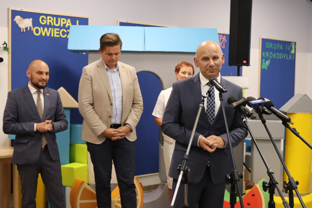 To jest drugi nowy obiekt, który oddajemy Państwu, oddajemy Państwa dzieciakom. Mam nadzieję, że będą w tym żłobku przebywać bezpiecznie, będą się bawić, ale też uczyć się życia, bo to jest początek tej nauki. Obiekt jest na pewno nowoczesny, i tak jak mnie wszyscy zapewniają, na pewno będzie bezpieczny. Bardzo się cieszę, że są tu osoby, których decyzje i wsparcie oraz pomoc były u podstaw budowy nowego żłobka, jestem też przekonany, że zostawiacie Państwo dzieci w rękach najlepszej kadry.